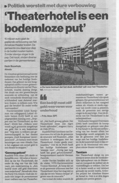 Ondanks dat het Theaterhotel al jarenlang gevrijwaard blijft van bezuingingsmaatregelen die elke gesubsidieerde organisatie in Almelo onherroepelijk voor de kiezen krijgt.
