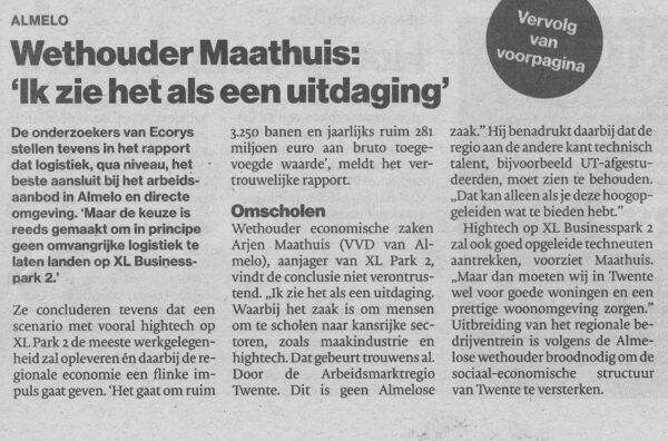 Een luchtkasteel, ‘gebaseerd op dromen’, waarschuwt retail- en merkendeskundige Paul Moers. Paul Moers behoort tot de meest prominente marketingdeskundigen van Nederland. Moers voorziet voor XL 2 hooguit 25 procent maakindustrie en de rest – 75 procent – logistiek. „En dat moet Almelo niet willen”, vindt de retaildeskundige uit Bornerbroek. Hij wijst erop dat distributiecentra grote aantallen arbeidsmigranten aantrekken. De Partij Vrij Almelo deelt deze conclusie en is van mening dat er actie ondernomen moet worden om het landschapsbeeld in onze stad en regio niet verder te laten verdozen.