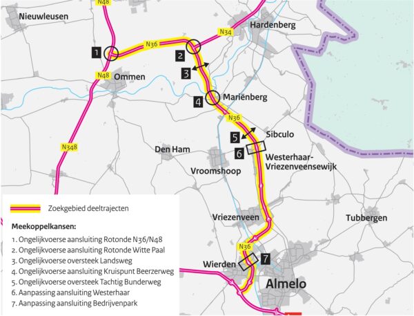 De N36 is langzamerhand een verkeersslagader in Overijssel geworden en had volgens de Partij Vrij Almelo al lang 2×2 baans moeten zijn. Voormalig verkeersminister Mark Harbers (VVD) onderkende de noodzaak en stelde 115 miljoen euro beschikbaar om de als ‘dodenweg’ omschreven N36 aan te pakken. Nu Rijkswaterstaat de verschillende varianten heeft laten onderzoeken blijkt dat echter bij lange na niet genoeg te zijn.