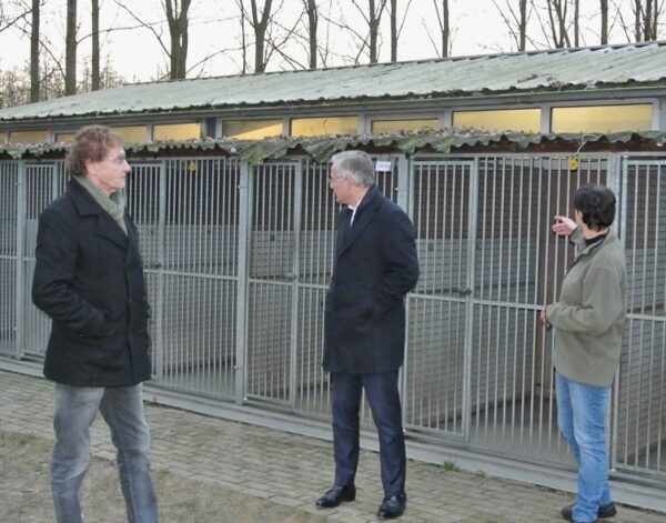Harry de Olde met voormalig burgemeester Arjen Gerritsen op bezoek bij dierenopvang ’t Noordbroek