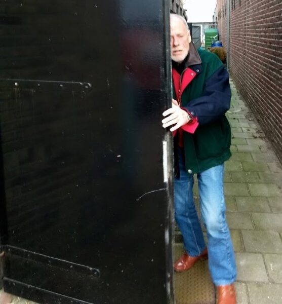 Henk Stegehuis bij zijn beruchte poort