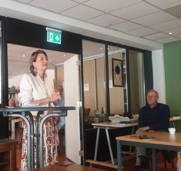 Als eerste spreker kwam Rosetta Accardi, werkzaam bij Avedan aan het woord met als onderwerp project Groenendael. Ontmoetingspunt op begraafplaats ’t Groenedael. Vorig jaar augustus is dit van start gegaan, eerst in een tent en nu in een mooi houten gebouwtje. “We zijn er voor iedereen die het moeilijk heeft of zich alleen voelt”, vertelt coördinator Rosetta Accardi van de welzijnsorganisatie. “Gewoon een kopje koffie of thee drinken mag ook. Het ontmoetingspunt is dinsdag 10.00-12.00 uur en donderdag 13.30 tot 15.30 uur open. Tevens zijn de woensdagmiddag van 13.30- 15.30 en de vrijdagochtend van 10.00- 12.00 er intussen ook bij gekomen.