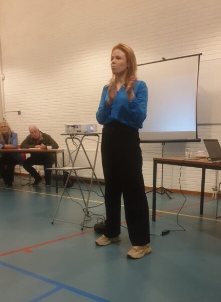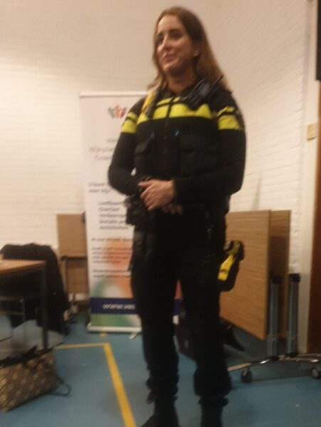 Als tweede spreker kwam de nieuwe wijkagent Ilse Scholten aan het woord. Zij vertelt wat over het wijkwerk dat ze in 2 dagen per week doet. Haar Instagram account is: wijkagent ossenkoppelerhoek. Parkeerproblemen vielen niet bij haar taak, legde ze uit. Wel merkte ze op dat de parallelweg langs de Windmolenbroeksweg bij de winkels nog steeds veel tegen het verkeer in wordt gereden. Richting aangeven doen de meeste mensen ook niet meer, gaf ze aan.